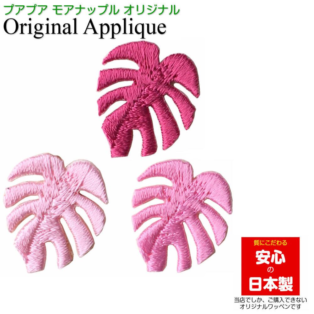 モンステラ ピンク 3枚 ワッペン 刺繍 アイロン接着 アップリケ アイロンワッペン ワッペンデコ ハワイ ハワイアン 花 大人 おしゃれ かわいい 女の子 男の子 入学 入園 日本製
