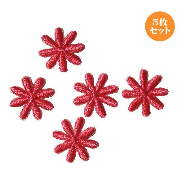 小花 レッド 5枚 ワッペン 刺繍 アイロン接着 アップリケ アイロンワッペン ワッペンデコ ハワイ ハワイアン フラワー 花 はな 小さい 補修 穴隠し 大人 おしゃれ かわいい 女の子 入学 入園 日本製