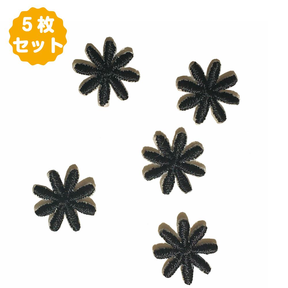 小花 ブラック 5枚 ワッペン 刺繍 アイロン接着 アップリケ アイロンワッペン ワッペンデコ ハワイ ハワイアン フラワー 花 はな 小さい 補修 穴隠し 大人 おしゃれ かわいい 女の子 入学 入園 日本製