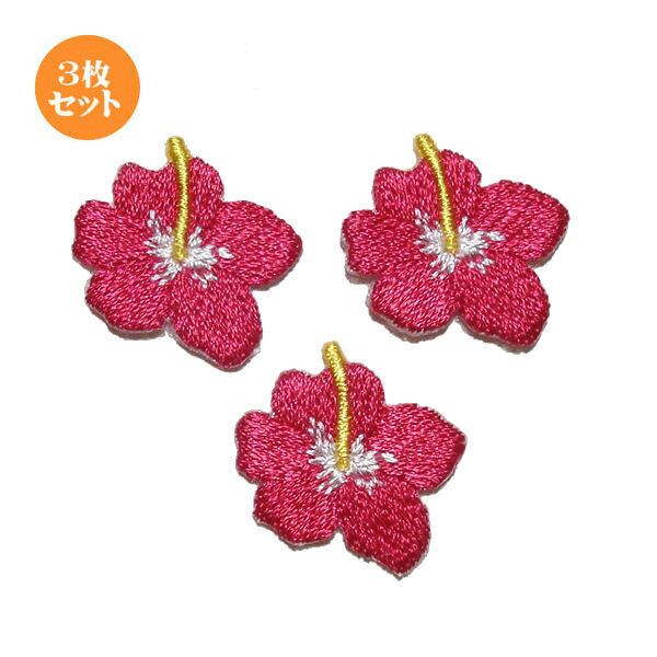 ハイビスカス 同色 3枚 ワッペン 刺繍 アイロン接着 アップリケ アイロンワッペン ワッペンデコ ハワイ ハワイアン 花 フラワー 大人 おしゃれ かわいい 女の子 入学 入園 日本製