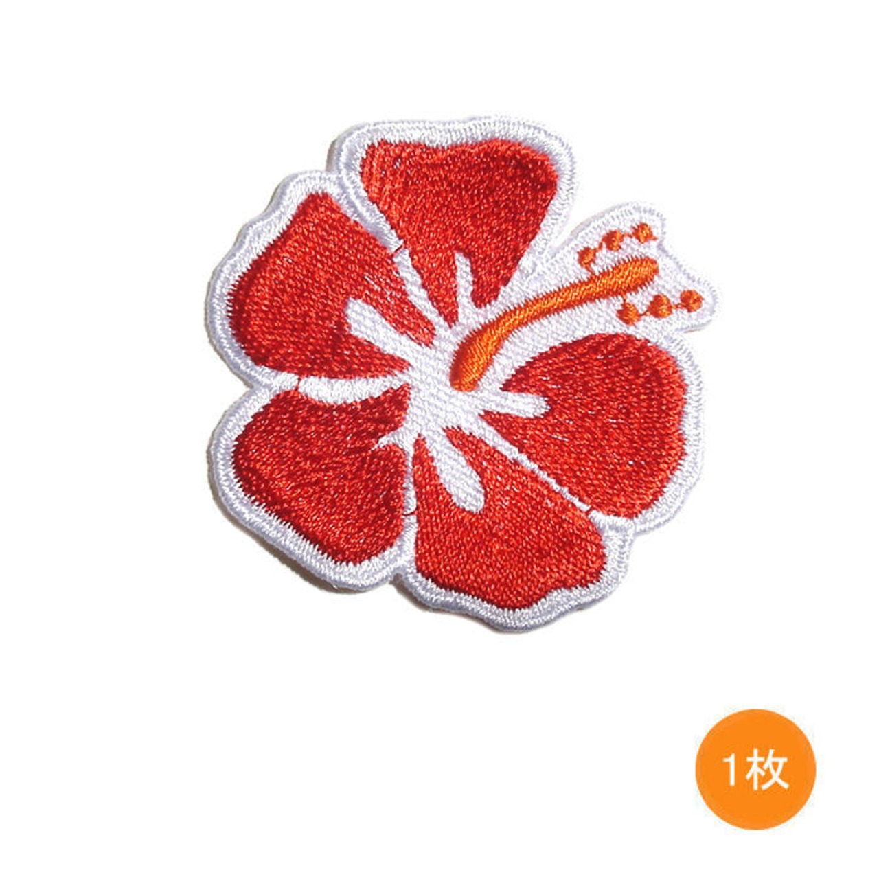 ハイビスカス レッド Lサイズ 1枚 ワッペン 刺繍 アイロン接着 アップリケ アイロンワッペン ワッペンデコ ハワイ ハワイアン 花 フラワー 大きい 大人 おしゃれ かわいい 女の子 入学 入園 日本製