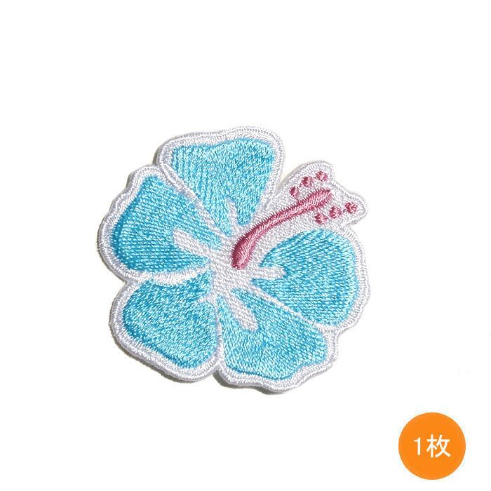 ハイビスカス ベビーライトブルー Lサイズ 1枚 ワッペン 刺繍 アイロン接着 アップリケ アイロンワッペン ワッペンデコ ハワイ ハワイアン 花 フラワー 大きい 大人 おしゃれ かわいい 女の子 入学 入園 日本製