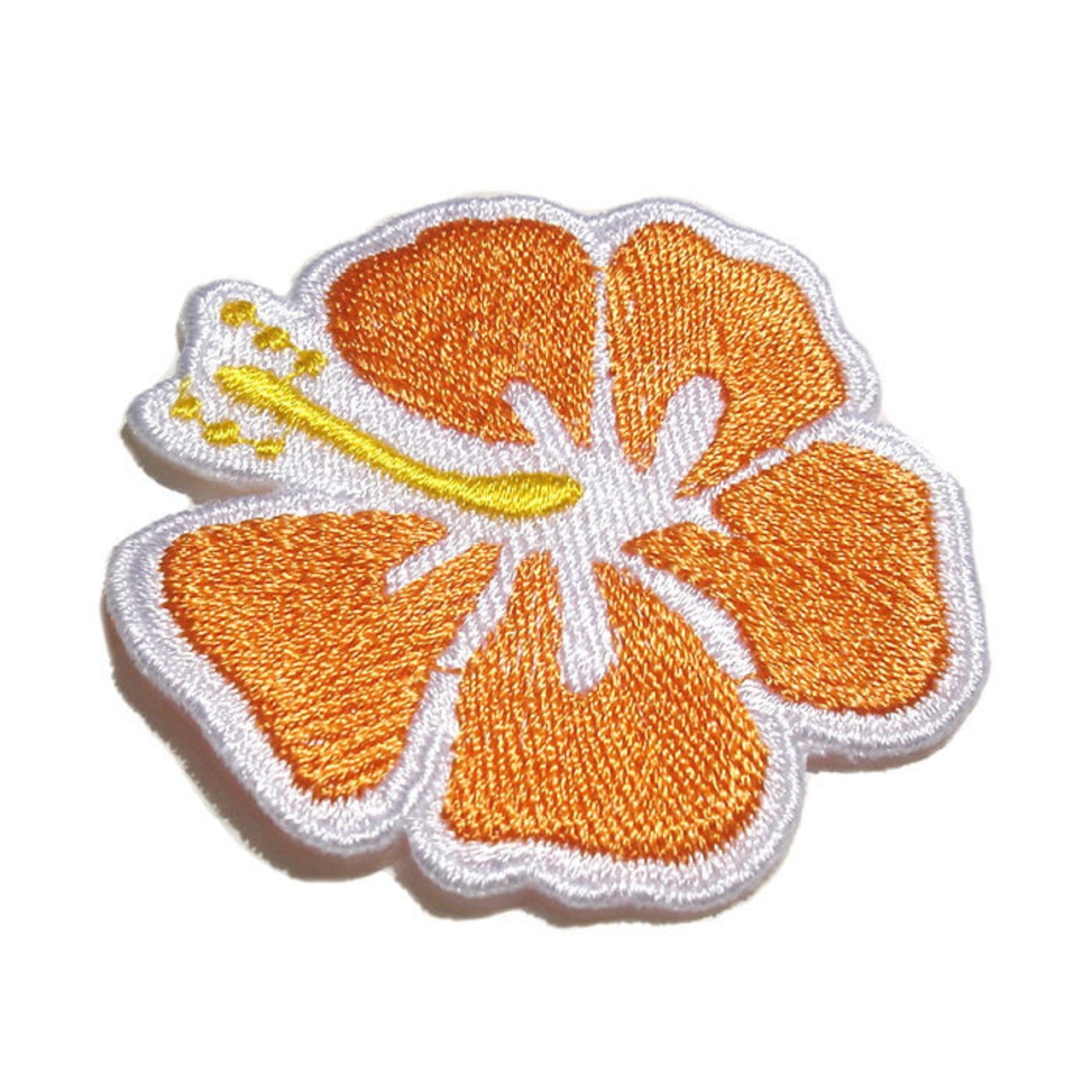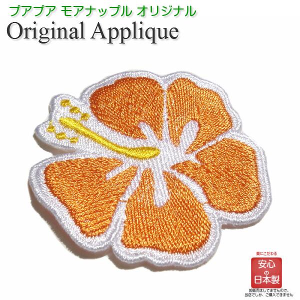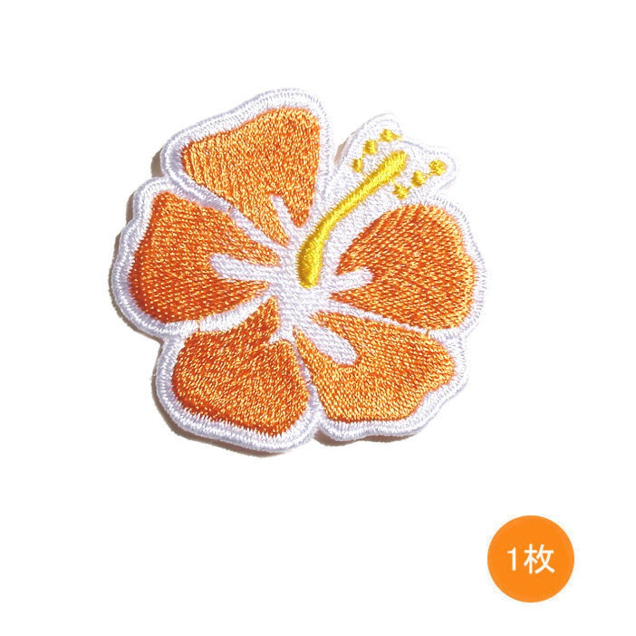 ハイビスカス オレンジ Lサイズ 1枚 ワッペン 刺繍 アイロン接着 アップリケ アイロンワッペン ワッペンデコ ハワイ ハワイアン 花 フラワー 大きい 大人 おしゃれ かわいい 女の子 入学 入園 日本製