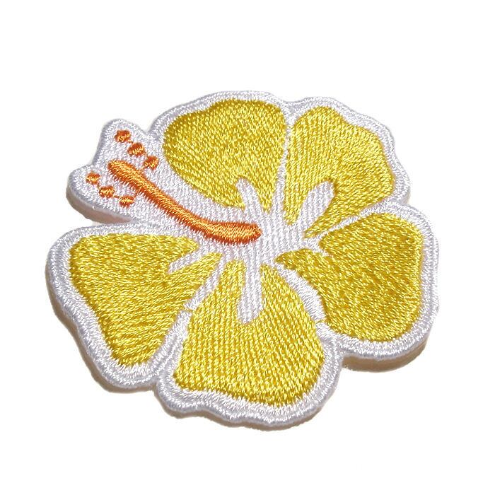 ハイビスカス イエロー Lサイズ 1枚 ワッペン 刺繍 アイロン接着 アップリケ アイロンワッペン ワッペンデコ ハワイ ハワイアン 花 フラワー 大きい 大人 おしゃれ かわいい 女の子 入学 入園 日本製