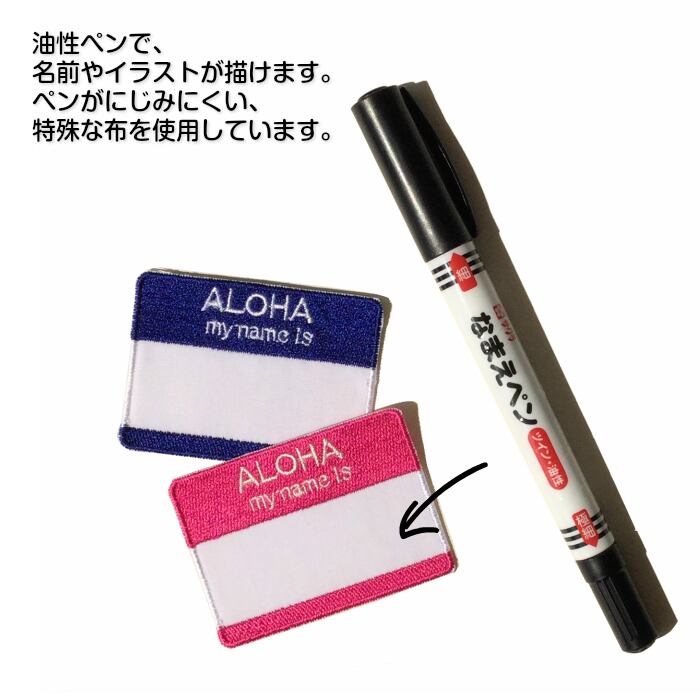 Aloha My Name is ネームワッペン 同色 2枚 ワッペン 刺繍 アイロン接着 アップリケ アイロンワッペン ワッペンデコ ハワイ ハワイアン 大きい 大人 おしゃれ かわいい 女の子 男の子 名前 入学 入園 日本製