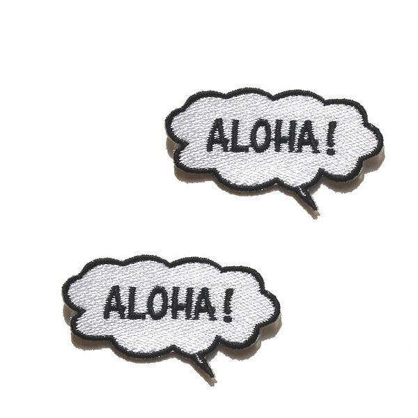 オリジナル ワッペン 吹き出し アロハ aloha 黒 2枚セット 日本製