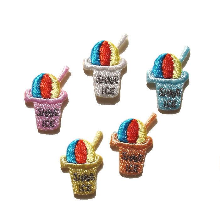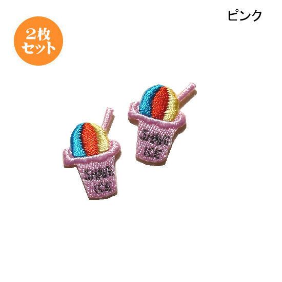 シェーブアイス 同色 2枚セット ワッペン 刺繍 アイロン接着 アップリケ アイロンワッペン ワッペンデコ 食べ物 かき氷 ハワイ ハワイアン 小さい 補修 穴隠し 大人 おしゃれ かわいい 女の子 男の子 入学 入園 日本製