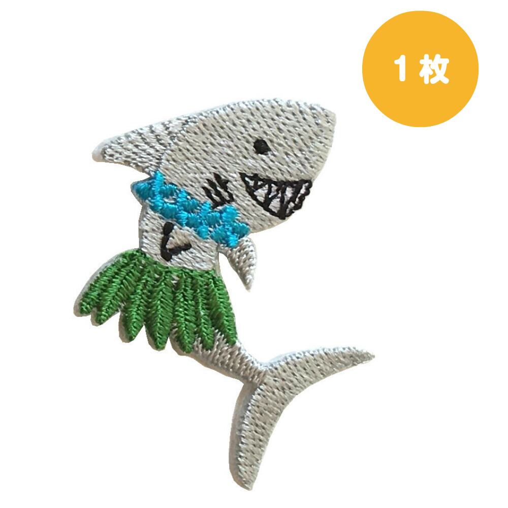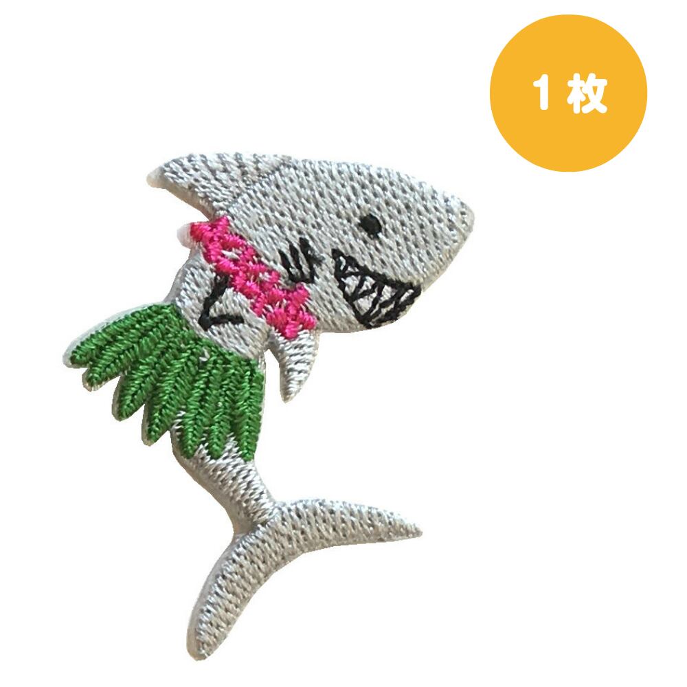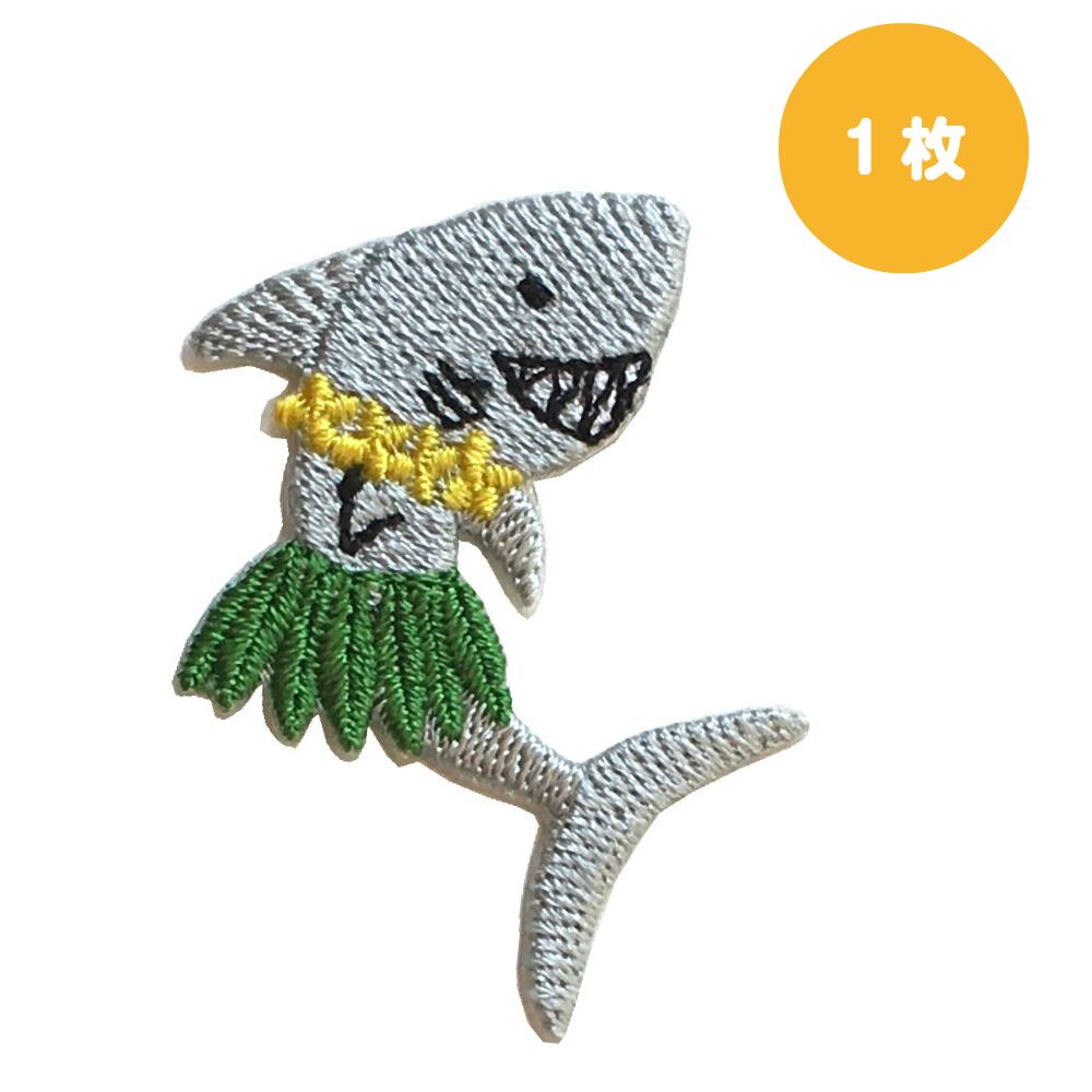 シャーク ワッペン アップリケ サメ 1枚 刺繍 ハワイ ハワイアン 大人 アイロン おしゃれ かわいい 女の子 男の子 さかな 魚 鮫 幼稚園 保育園 入園 入学 マーク アイロン 接着 目印 補修 大人向け こども 布マスク デコ スモック アメリカン 帽子